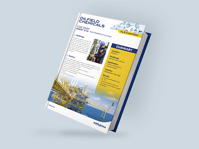After a complete system analysis, Arkema recommended Norust®SC 62, a concentrated non-Triazine Hydrogen Sulphide Scavenger formulated to convert H2S into a water-soluble, non-corrosive and non-toxic product.